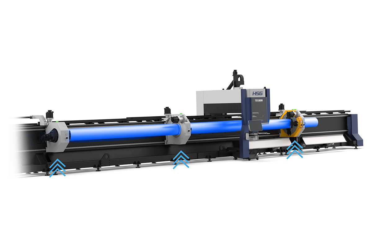 C3、C4卡盤合二為一,兼具支撐和夾持兩種功能。實現12米長整管切割,最后一刀可切圖形工藝。